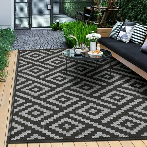 Balajeesusa 9 X12 Outdoor Patio Rv Camping Rug Mat Indoor Picnic Garden Reversible Outdoor Rugs Patio Camping Rug Outdoor Camping Rugs